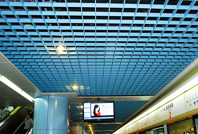 铝格栅有开放的视野,是开放式空间的高性价比选择。铝格栅吊顶天花的原材料是A2级防火铝板,这个是为什么大型工程项目都会选择铝格栅和铝方通吊顶天花。铝格栅吊顶天花都有线条明快飘逸,选用适当的视觉高度,可以产生不一样的视觉效果,还可以采用不同色彩的板混合搭配,并且与不同产品的天花如大型的方板和变化的格栅混合搭配,其他维修限制较小,令设计千变万化,整个空间宽敞通透的特点。